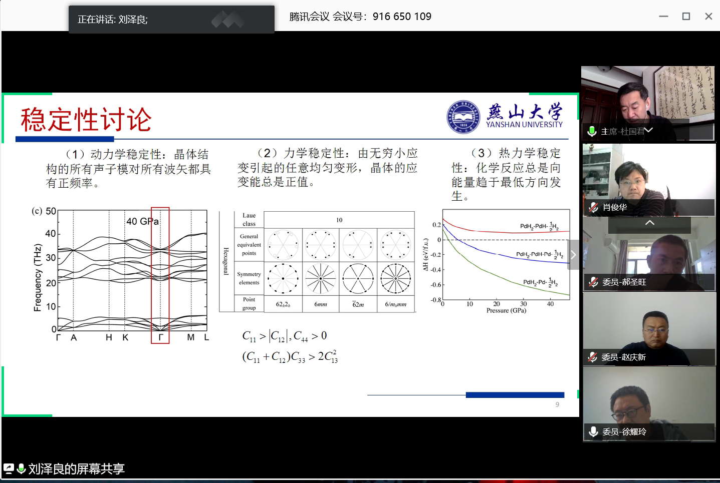 和工程力学系的精心准备,4月24日上午9点视频答辩会准时开始。正式答辩过程中,答辩人阐述论文、评委质询、答辩人回答问题、委员投票和评议,流程与线下答辩完全一致,各个环节紧张有序。经过近三个小时的视频答辩和会议讨论,李文强和刘泽良两位研究生顺利通过了博士学位论文预答辩。最后,答辩委员会主席杜国君教授宣读预答辩决议,本次预答辩在掌声中圆满结束。