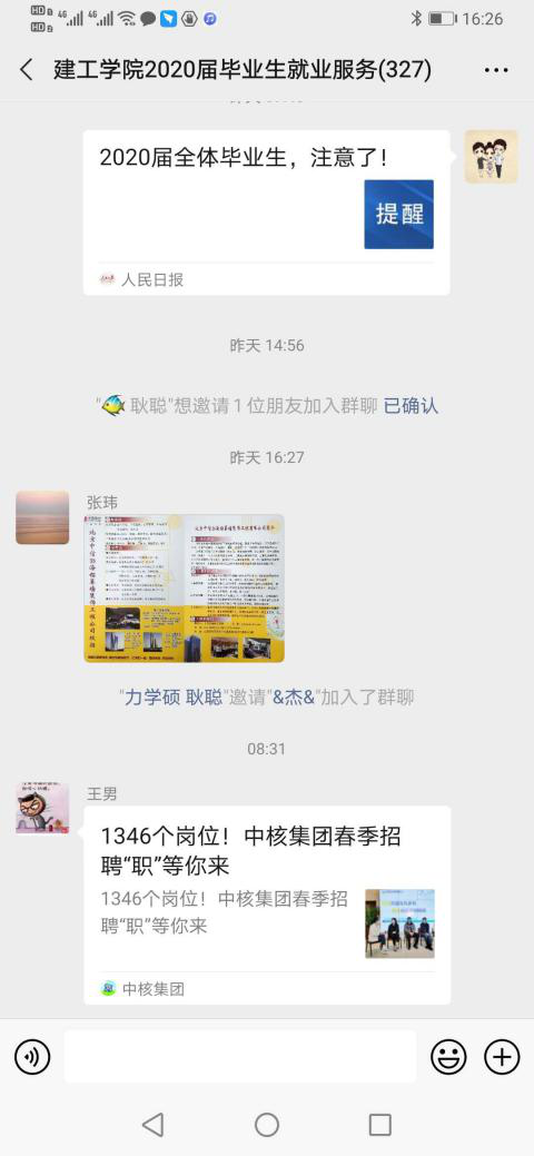 微信就业服务群已邀请20余家企业代表,300余名毕业生,为学生提供咨询服务500余次。