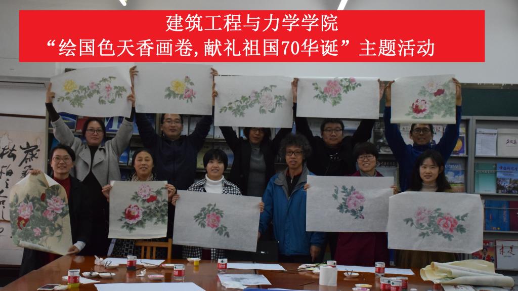 此次国画学习活动,丰富了教职工的精神文化生活,抒发了老师们对新时代幸福生活的真挚感受。大家表示将时刻铭记“不忘初心、牢记使命”,以更加积极的心态投入到生活与工作中,为学校发展做出更多贡献。最后,所有老师高举牡丹画卷,为中华人民共和国70华诞献礼,共同祝愿伟大的祖国繁荣昌盛。