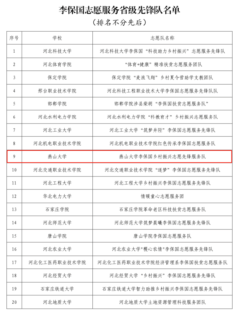 教育厅公布了《李保国志愿服务省级先锋队名单》,由校团委牵头、日本a片