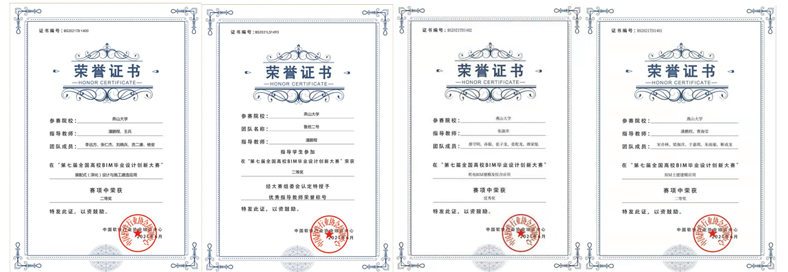 建筑学、土木工程以及建筑环境与能源应用工程三个专业学生组成的三支代表队参加了国赛的角逐。最终,作品“唐山南堡幼儿园BIM建模”、“某装配式建筑BIM建模及施工平面布置”获得全国二等奖,“广联达综合楼水暖电系统设计”获得优秀奖,潘鹏程老师获评“优秀指导教师”,实现了我校在该项竞赛中获奖质量与数量的突破。