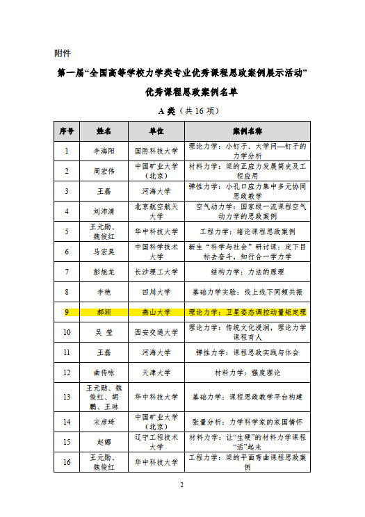 经过遴选后,郝颖和余为两位老师受邀参加了教育部高等学校力学类教学指导委员会课程思政建设会议。会上经过优中选优,两位老师课程思政案例被教指委计划列入“教育部高教司力学类课程思政教学指南”。该指南预计2022年全国发行。