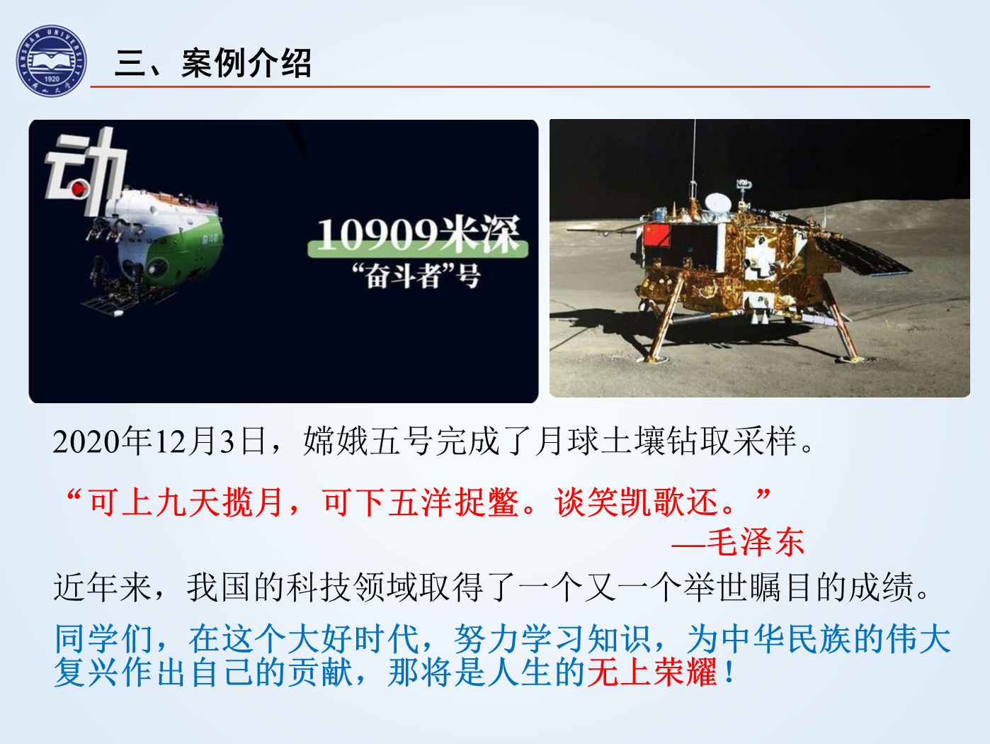 余为老师通过讲解实际问题的简化例题、互动式教学,翻转课堂等方式,提高学生的学习积极性,通过分析和讨论工程实际问题中的力学问题,让学生感觉到学以致用。然后讲解该知识点在大国工程、大国重器、新科技、新材料等中的应用,从而顺利的开展课程思政教育,从科学精神,政治认同,家国情怀,国际视野,担当精神等方面对学生进行价值塑造。他针对课程内容整理了十余个思政案例。他还经常根据时事、节日或学生的课堂表现等情况,积极开展课程思政教育,包括历史、文化自信,积极的态度,优秀的习惯,吃苦耐劳的精神,良好的人际关系,责任意识,人生注重过程,坦然面对挫折等等,让学生真切的感受到关爱,一次次的体会到心灵触动,从而达到润物细无声的效果。余老师认为,如果课程思政开展得好,则更有利于课程教学的效果。因为,学生认同老师,就会更主动积极的学习这门课程!
