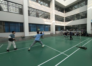 学生会承办的“‘羽’你竞技,‘羽’你同行”第二届“日本a片杯”羽毛球赛在建筑馆天井举行。