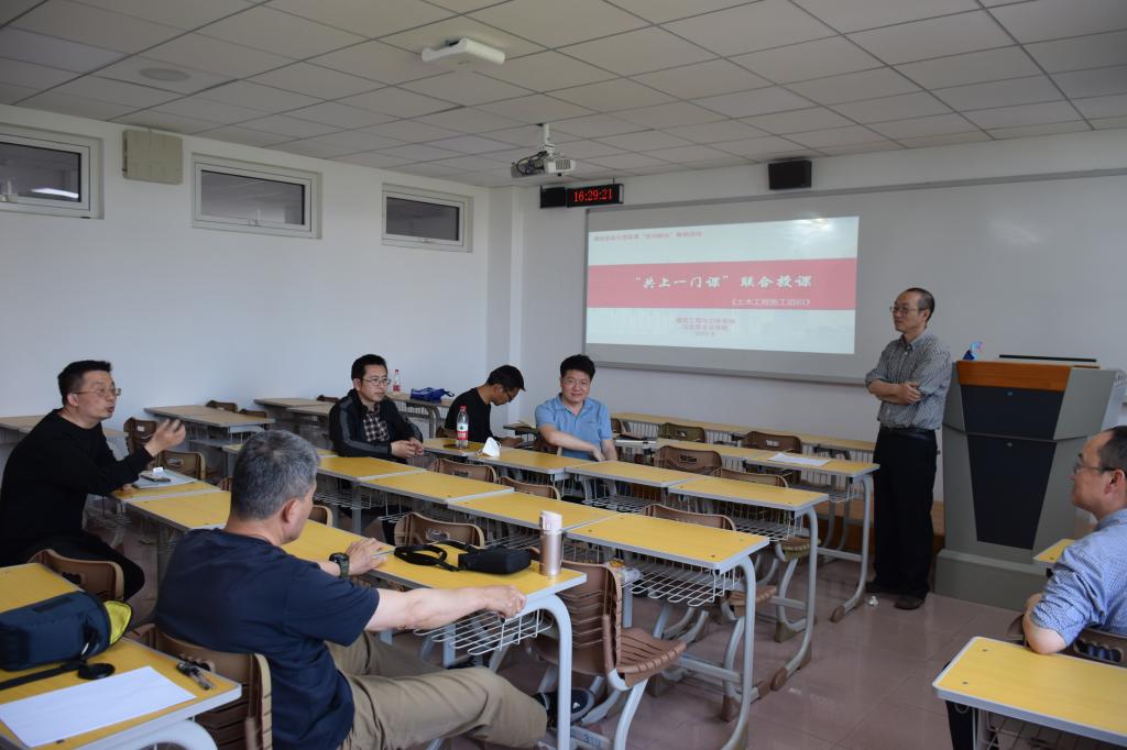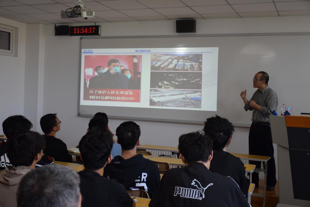 课程思政示范课程“土木工程施工组织”的教学内容中选取了一个教学节段进行现场授课。潘老师以疫情期间“火神山”医院建造中的施工组织为例,运用PPT并辅以相关视频,深入浅出地讲解了工程建造中的施工组织问题,并结合实例完美展现了我们党和国家始终坚持“生命至上、人民至上”的抗疫图谱。潘老师驾轻就熟,娓娓道来,将专业知识与思政元素有机融合,充分实现了知识传授与价值引领的统一,深深吸引了在场的每一位师生。潘鹏程老师授课完毕后,杨新宾老师就潘老师授课案例中蕴含的思政知识点进行了拓展和延伸,使同学们对抗疫精神的认识得到了进一步升华。