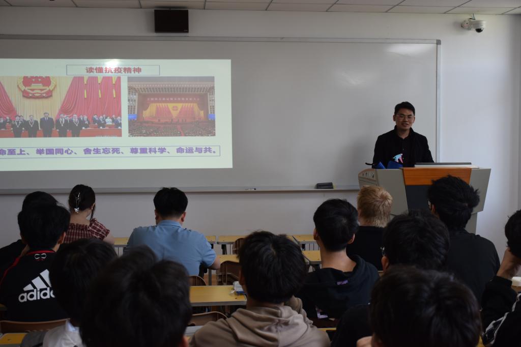 思政课教师杨新宾受邀做为授课主讲教师。院属各教学单位的课程思政骨干教师到场观摩,胡建军副院长参加活动。