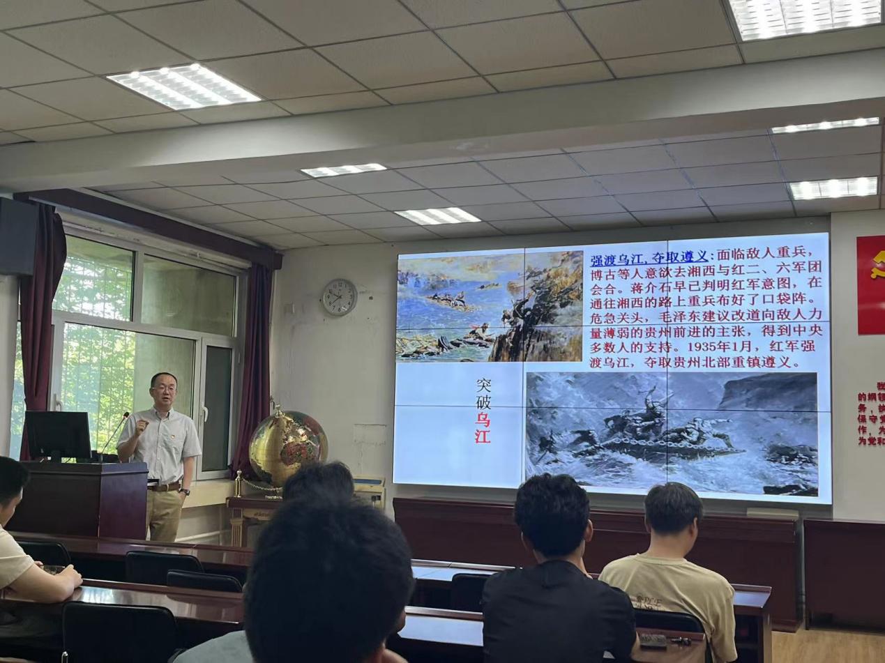 学生党员代表,以《从中国工农红军长征胜利再看两个确立的历史意义》为题讲授主题教育专题党课。他从“中央红军为什么要长征?”“长征从何时开始、从哪里出发的?”等13个问题入手,带领学生党员学习长征的历史及其伟大精神。胡建军强调,大到国家建设,小到党员的自身发展,都离不开长征精神的指导。全院师生要以长征精神为指引,坚定信念、不畏艰险、锚定目标、勇往直前,一步一个脚印,走好日本a片