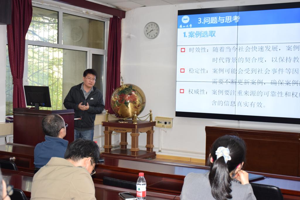 的思政课教师结合专业课教师的汇报对各位老师的课程思政教学情况逐一进行了精彩点评,并对各专业课程的课程思政教学提出了中肯意见和改进建议。之后,现场全体教师就课程思政教学中的难点、思政课教学中的问题,以及如何实现课程思政与思政课程的深度融合进行了深入研讨交流。
