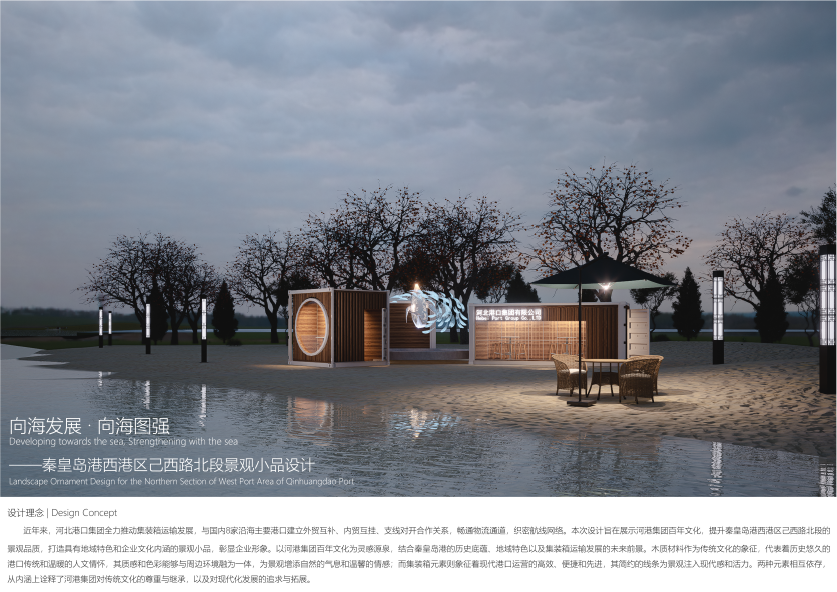 与河北港口集团有限公司港口资产管理分公司携手,以实际项目为依托,共同举办城市更新系列竞赛之——“河港资产杯”景观(系列)小品创意设计大赛。大赛目的为展示秦皇岛港百年文化,优化西港区己西路沿线绿化品质。大赛内容为秦皇岛港西港区己西路北段景观小品创意设计。